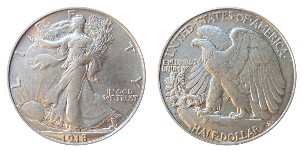 1918 S Walking Liberty Silver Half Dollar