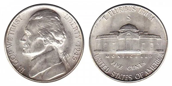 1945 S Wartime Jefferson Nickel - Silver War Nickel