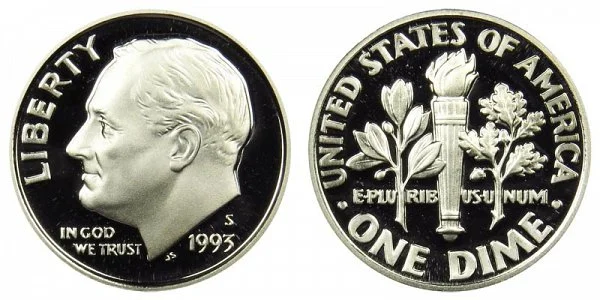 1993 S Silver Roosevelt Dimes were struck only as Proof coins.