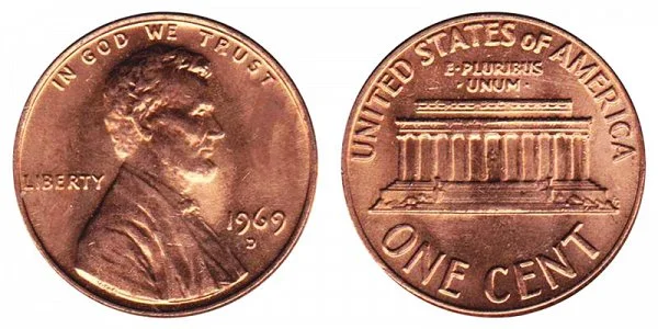 1969 D Lincoln Memorial Cent Penny