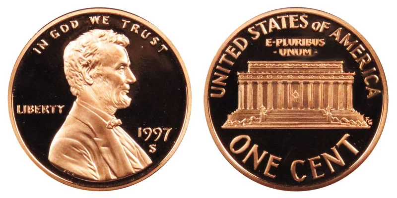 1997 S Lincoln Memorial Cents (Penny) were struck only as Proof coins.