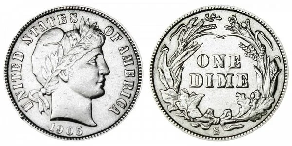 1905 S Silver Barber Dime