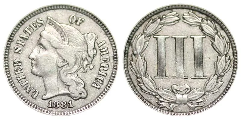 Gmyers's 1881 P Nickel Three Cent Three Cents