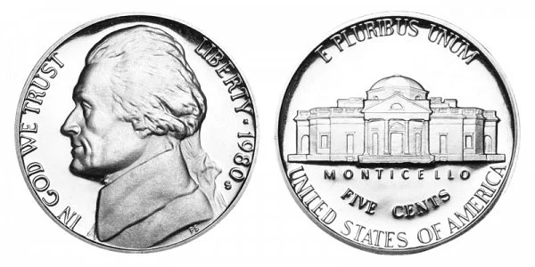 1980 S Jefferson Nickels were struck only as Proof coins.