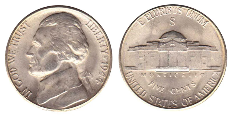 1944 S Wartime Jefferson Nickel - Silver War Nickel