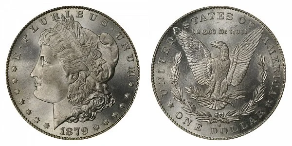One major variety of the 1879 S Morgan Silver Dollar features the reverse design of 1879. The San Francisco Mint produced two major varieties including a coin using the earlier reverse of 1878.