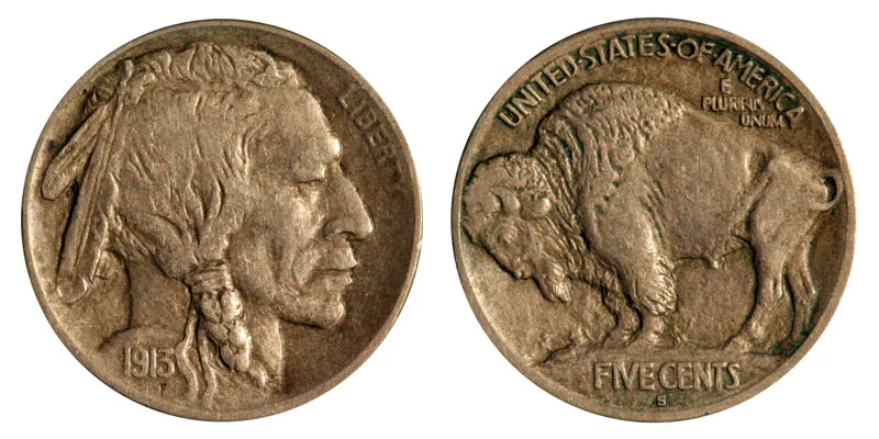 1913 S Mound Type 1 Indian Head Buffalo Nickel