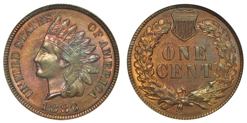 There were two major types of 1886 Indian Head Cent (Penny) varieties. The one shown above is the Type 2 (Variety II) penny.