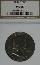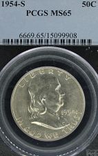USA Coin Book Estimated Value of 1954-S Franklin Half Dollar is Worth $39 in Average Condition and can be Worth $45 to $94 or more in Uncirculated (MS+) Mint Condition. Click here to Learn How to use Coin Price Charts . Also, click here to Learn About Grading Coins . The Melt Value shown below is how Valuable the Coin's Metal is Worth (bare minimum value of coin). Click here to see the Melt Value of every US Coin .