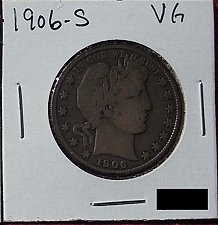 USA Coin Book Estimated Value of 1906-S Barber Half Dollar is Worth $59 in Average Condition and can be Worth $1,089 to $2,012 or more in Uncirculated (MS+) Mint Condition. Click here to Learn How to use Coin Price Charts . Also, click here to Learn About Grading Coins . The Melt Value shown below is how Valuable the Coin's Metal is Worth (bare minimum value of coin). Click here to see the Melt Value of every US Coin .