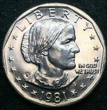What This Coin Looks Like (Obverse, Reverse, Mint Mark Location, Special Features, etc.): This is the business strike version of the San Francisco minted 1981 S Susan B. Anthony (SBA) Dollar. Typically coins minted in San Francisco during modern times are proof-only coins. Although this coin bears the "S" mintmark and was put into general circulation and can also be found in Brilliant Uncirculated condition in mint sets as well.