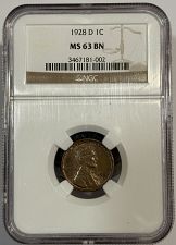 USA Coin Book Estimated Value of 1928-D Lincoln Wheat Penny is Worth $1.24 in Average Condition and can be Worth $61 to $100 or more in Uncirculated (MS+) Mint Condition. Click here to Learn How to use Coin Price Charts . Also, click here to Learn About Grading Coins . The Melt Value shown below is how Valuable the Coin's Metal is Worth (bare minimum value of coin). Click here to see the Melt Value of every US Coin .