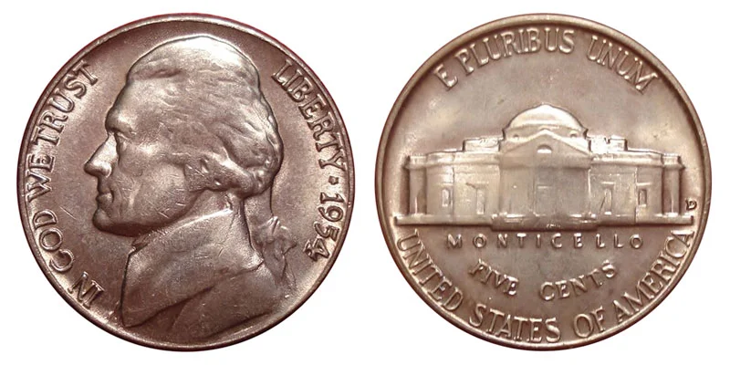 1954 D Jefferson Nickels