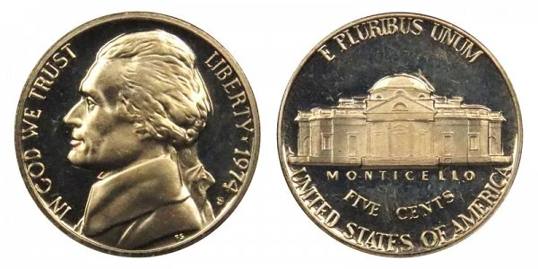 What This Coin Looks Like (Obverse, Reverse, Mint Mark Location, Special Features, etc.): 1974 S Jefferson Nickels were struck only as Proof coins.