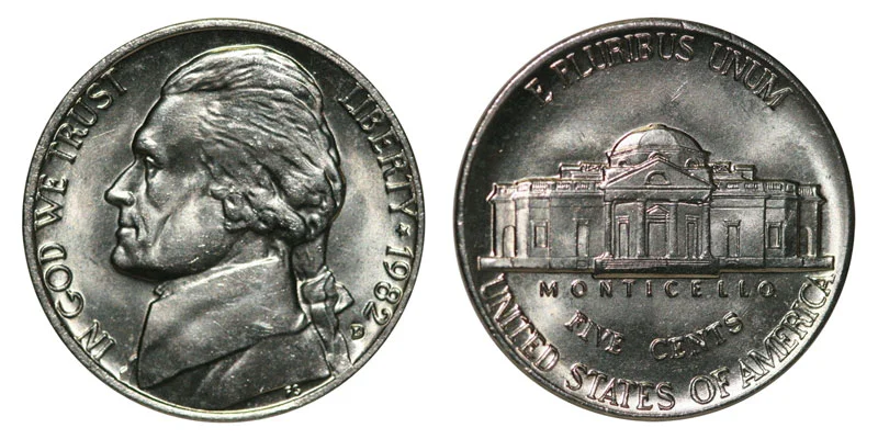1982 D Jefferson Nickels