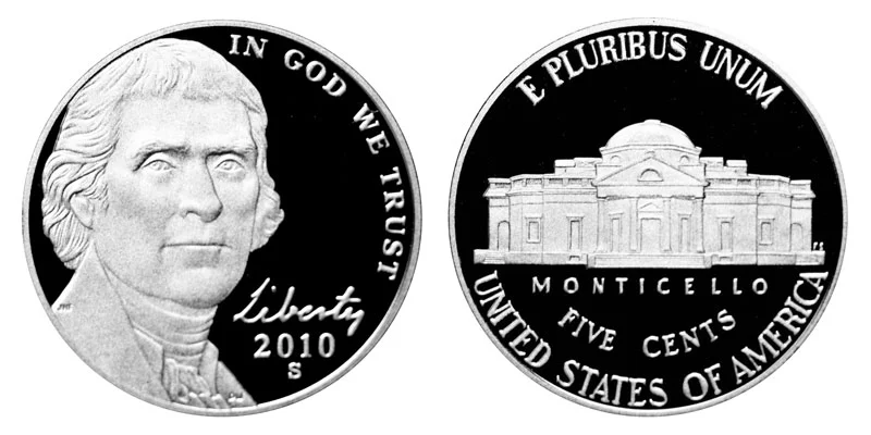 What This Coin Looks Like (Obverse, Reverse, Mint Mark Location, Special Features, etc.): 2010 S Jefferson Nickels were struck only as Proof coins.