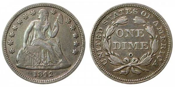 USA Coin Book Estimated Value of 1842-O Seated Liberty Dime is Worth $78 in Average Condition and can be Worth $3,433 to $6,262 or more in Uncirculated (MS+) Mint Condition. Click here to Learn How to use Coin Price Charts . Also, click here to Learn About Grading Coins . The Melt Value shown below is how Valuable the Coin's Metal is Worth (bare minimum value of coin). Click here to see the Melt Value of every US Coin .