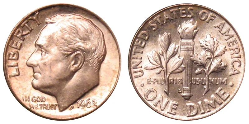 USA Coin Book Estimated Value of 1962-D Roosevelt Dime is Worth $7.75 in Average Condition and can be Worth $9.57 to $12.25 or more in Uncirculated (MS+) Mint Condition. Click here to Learn How to use Coin Price Charts . Also, click here to Learn About Grading Coins . The Melt Value shown below is how Valuable the Coin's Metal is Worth (bare minimum value of coin). Click here to see the Melt Value of every US Coin .