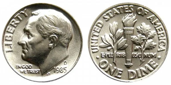 USA Coin Book Estimated Value of 1985-D Roosevelt Dime is Worth $2.79 or more in Uncirculated (MS+) Mint Condition. Click here to Learn How to use Coin Price Charts . Also, click here to Learn About Grading Coins . The Melt Value shown below is how Valuable the Coin's Metal is Worth (bare minimum value of coin). Click here to see the Melt Value of every US Coin .