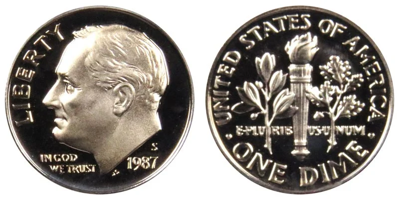 What This Coin Looks Like (Obverse, Reverse, Mint Mark Location, Special Features, etc.): 1987 S Roosevelt Dimes were struck only as Proof coins.