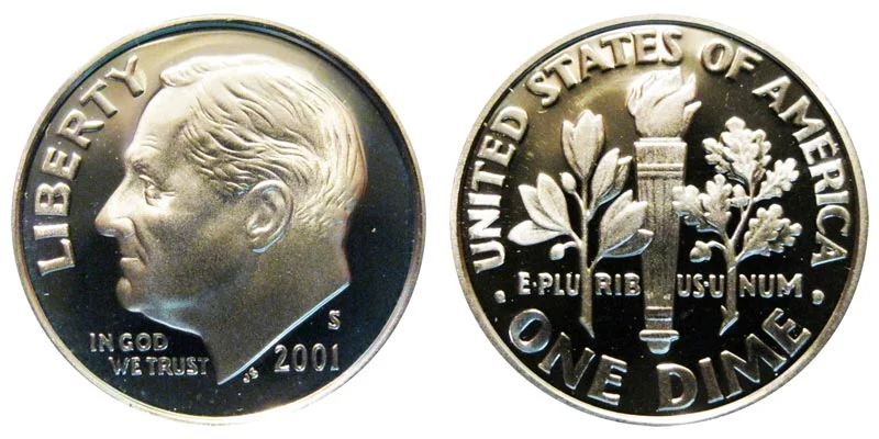 What This Coin Looks Like (Obverse, Reverse, Mint Mark Location, Special Features, etc.): 2001 S Roosevelt Dimes were struck only as Proof coins.