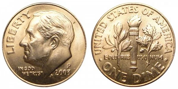 USA Coin Book Estimated Value of 2003-P Roosevelt Dime is Worth $2.50 or more in Uncirculated (MS+) Mint Condition. Click here to Learn How to use Coin Price Charts . Also, click here to Learn About Grading Coins . The Melt Value shown below is how Valuable the Coin's Metal is Worth (bare minimum value of coin). Click here to see the Melt Value of every US Coin .