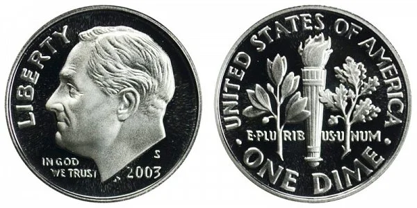 USA Coin Book Estimated Value of 2003-S Roosevelt Dime (Silver Proof Variety) is Worth $11.22 or more. Click here to Learn How to use Coin Price Charts . Also, click here to Learn About Grading Coins . The Melt Value shown below is how Valuable the Coin's Metal is Worth (bare minimum value of coin). Click here to see the Melt Value of every US Coin .