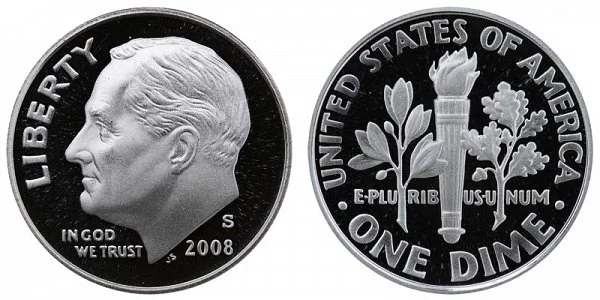 What This Coin Looks Like (Obverse, Reverse, Mint Mark Location, Special Features, etc.): 2008 S Silver Roosevelt Dimes were struck only as Proof coins.