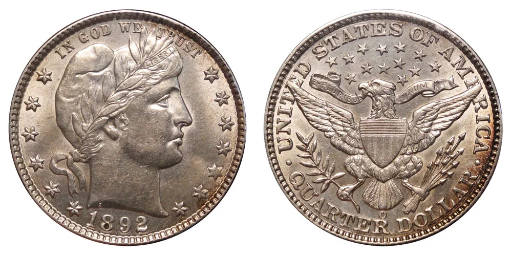 1892 O Barber Quarters