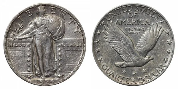 USA Coin Book Estimated Value of 1924-S Standing Liberty Quarter is Worth $47 in Average Condition and can be Worth $420 to $1,077 or more in Uncirculated (MS+) Mint Condition. Click here to Learn How to use Coin Price Charts . Also, click here to Learn About Grading Coins . The Melt Value shown below is how Valuable the Coin's Metal is Worth (bare minimum value of coin). Click here to see the Melt Value of every US Coin .