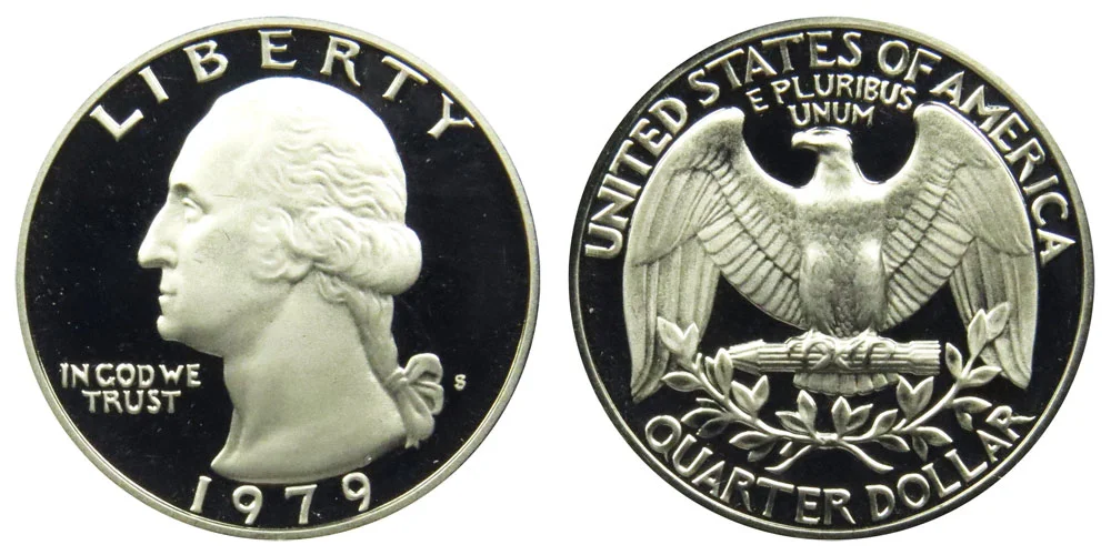 The 1979 Type 2 Clear S Washington Quarter has a much clearer and well-defined S mintmark and is also only found as a proof coin. Depicted below is an example comparison image between the type 1 filled "S" vs type 2 clear "S":
