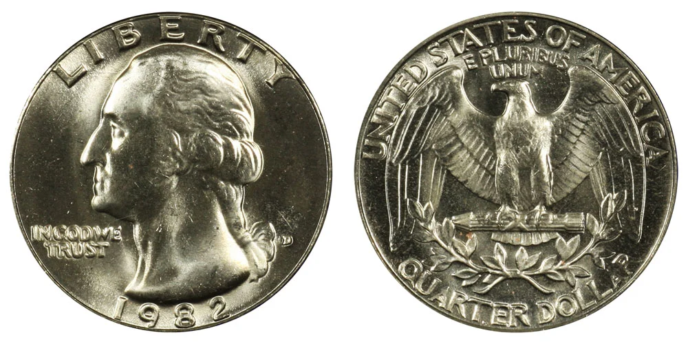 USA Coin Book Estimated Value of 1982-D Washington Quarter is Worth $30 or more in Uncirculated (MS+) Mint Condition. Click here to Learn How to use Coin Price Charts . Also, click here to Learn About Grading Coins . The Melt Value shown below is how Valuable the Coin's Metal is Worth (bare minimum value of coin). Click here to see the Melt Value of every US Coin .