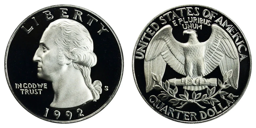 What This Coin Looks Like (Obverse, Reverse, Mint Mark Location, Special Features, etc.): 1992 S Washington Quarters were struck only as Proof coins.