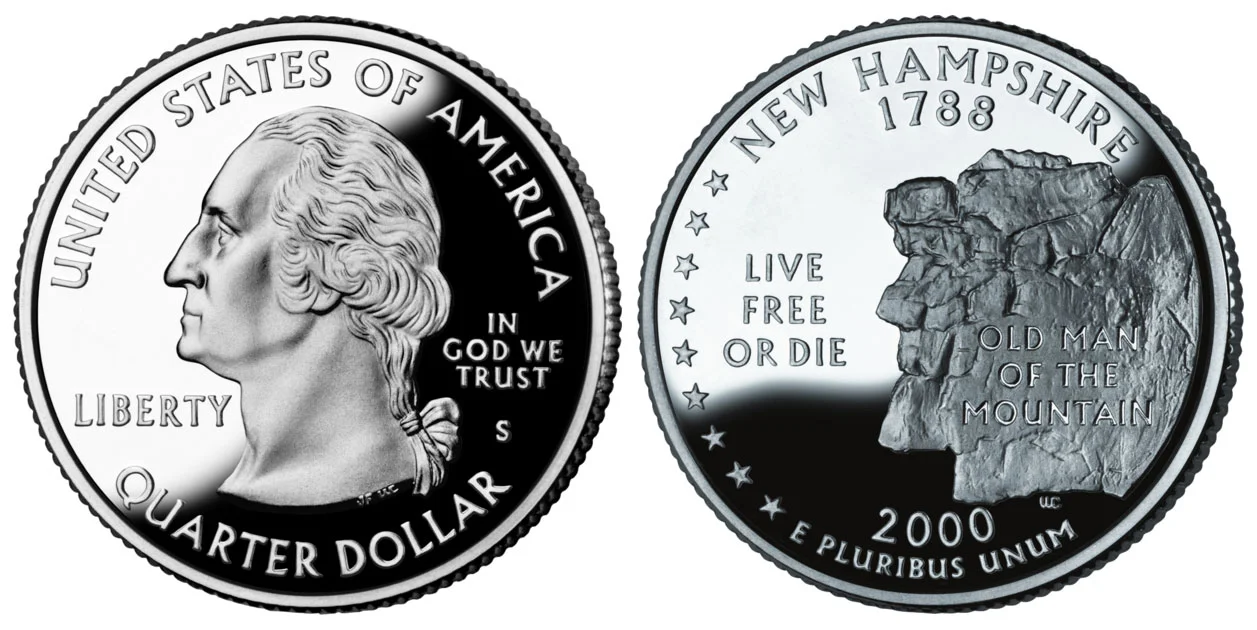 What This Coin Looks Like (Obverse, Reverse, Mint Mark Location, Special Features, etc.): "Live Free Or Die - Old Man Of The Mountain"