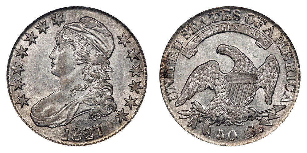 1827 Capped Bust Half Dollars : Square Base 2