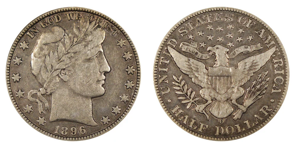 USA Coin Book Estimated Value of 1896-O Barber Half Dollar is Worth $158 in Average Condition and can be Worth $816 to $15,276 or more in Uncirculated (MS+) Mint Condition. Click here to Learn How to use Coin Price Charts . Also, click here to Learn About Grading Coins . The Melt Value shown below is how Valuable the Coin's Metal is Worth (bare minimum value of coin). Click here to see the Melt Value of every US Coin .
