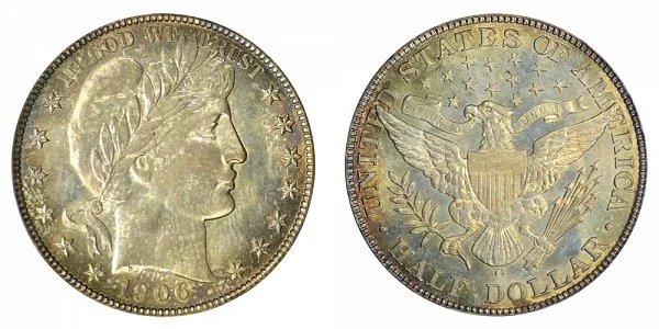 USA Coin Book Estimated Value of 1906-O Barber Half Dollar is Worth $58 in Average Condition and can be Worth $1,152 to $1,960 or more in Uncirculated (MS+) Mint Condition. Click here to Learn How to use Coin Price Charts . Also, click here to Learn About Grading Coins . The Melt Value shown below is how Valuable the Coin's Metal is Worth (bare minimum value of coin). Click here to see the Melt Value of every US Coin .