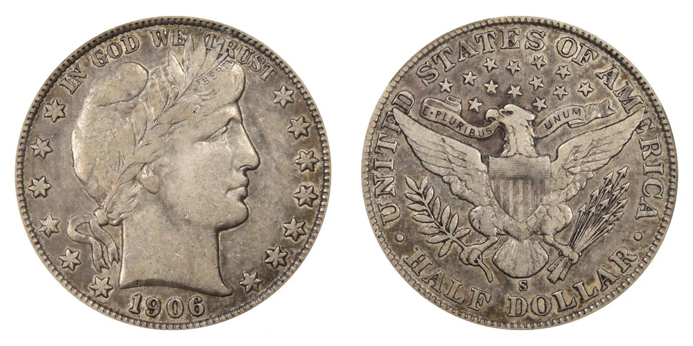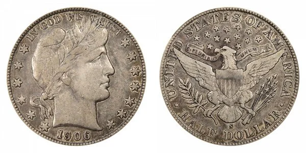 USA Coin Book Estimated Value of 1906-S Barber Half Dollar is Worth $59 in Average Condition and can be Worth $1,089 to $2,013 or more in Uncirculated (MS+) Mint Condition. Click here to Learn How to use Coin Price Charts . Also, click here to Learn About Grading Coins . The Melt Value shown below is how Valuable the Coin's Metal is Worth (bare minimum value of coin). Click here to see the Melt Value of every US Coin .