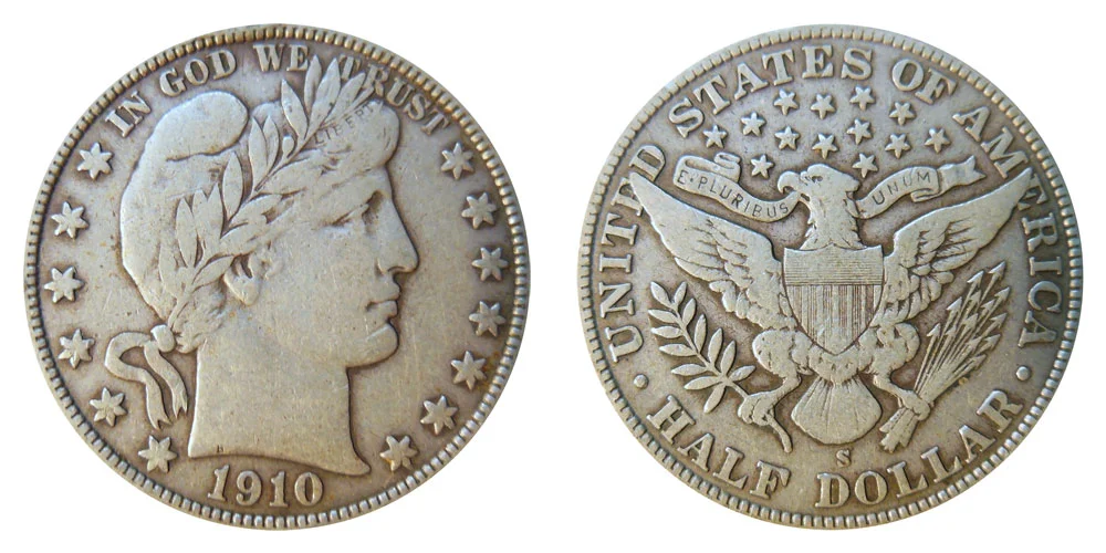 USA Coin Book Estimated Value of 1910-S Barber Half Dollar is Worth $62 in Average Condition and can be Worth $1,022 to $2,197 or more in Uncirculated (MS+) Mint Condition. Click here to Learn How to use Coin Price Charts . Also, click here to Learn About Grading Coins . The Melt Value shown below is how Valuable the Coin's Metal is Worth (bare minimum value of coin). Click here to see the Melt Value of every US Coin .