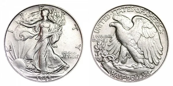 USA Coin Book Estimated Value of 1945-S Walking Liberty Half Dollar is Worth $43 in Average Condition and can be Worth $72 to $95 or more in Uncirculated (MS+) Mint Condition. Click here to Learn How to use Coin Price Charts . Also, click here to Learn About Grading Coins . The Melt Value shown below is how Valuable the Coin's Metal is Worth (bare minimum value of coin). Click here to see the Melt Value of every US Coin .