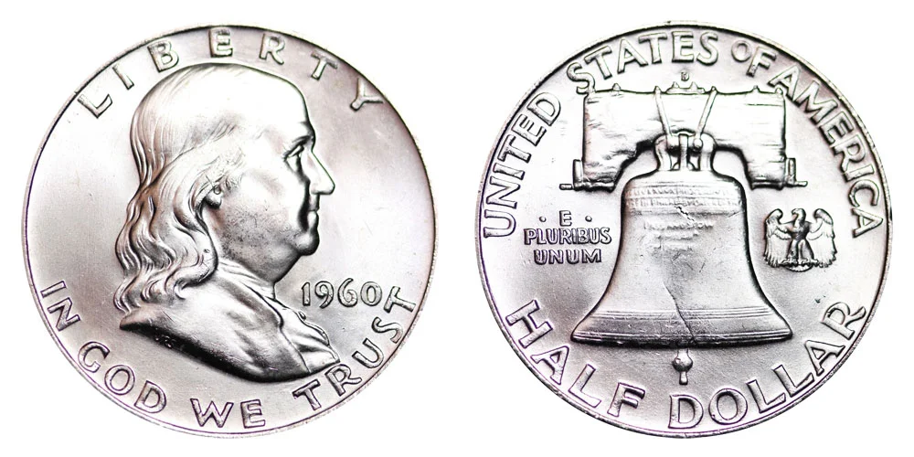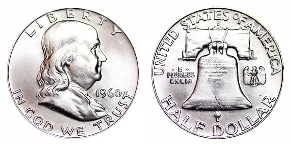 USA Coin Book Estimated Value of 1960-D Franklin Half Dollar is Worth $38 in Average Condition and can be Worth $43 to $210 or more in Uncirculated (MS+) Mint Condition. Click here to Learn How to use Coin Price Charts . Also, click here to Learn About Grading Coins . The Melt Value shown below is how Valuable the Coin's Metal is Worth (bare minimum value of coin). Click here to see the Melt Value of every US Coin .