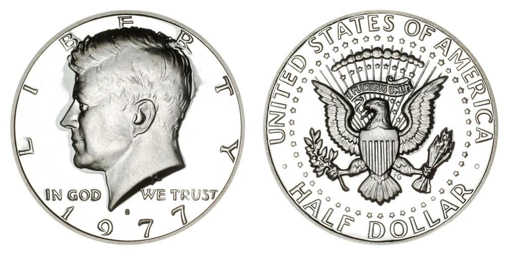 What This Coin Looks Like (Obverse, Reverse, Mint Mark Location, Special Features, etc.): 1977 S Kennedy Half Dollars were struck only as Proof coins.
