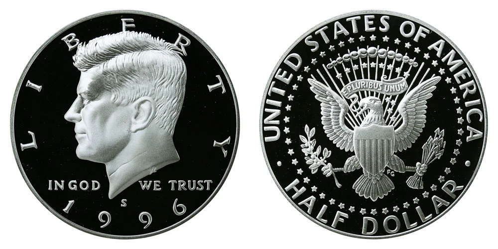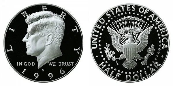 What This Coin Looks Like (Obverse, Reverse, Mint Mark Location, Special Features, etc.): 1996 S Kennedy Half Dollars were struck only as Proof coins.