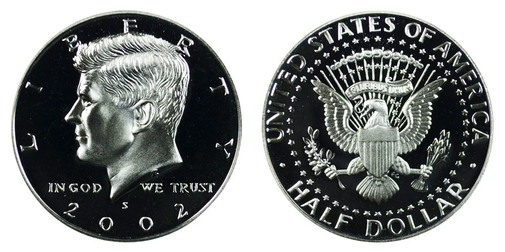 What This Coin Looks Like (Obverse, Reverse, Mint Mark Location, Special Features, etc.): 2002 S Kennedy Half Dollars were struck only as Proof coins.