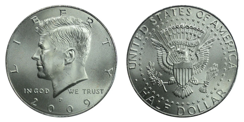 USA Coin Book Estimated Value of 2009-P Kennedy Half Dollar is Worth $2.50 or more in Uncirculated (MS+) Mint Condition. Click here to Learn How to use Coin Price Charts . Also, click here to Learn About Grading Coins . The Melt Value shown below is how Valuable the Coin's Metal is Worth (bare minimum value of coin). Click here to see the Melt Value of every US Coin .