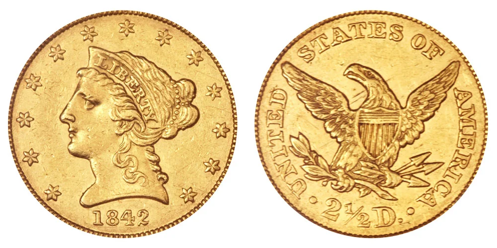 1842 Liberty Head $2.50 Gold Quarter Eagle - 2 1/2 Dollars