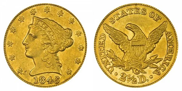 USA Coin Book Estimated Value of 1846-C Coronet Head Gold $2.50 Quarter Eagle is Worth $3,427 in Average Condition and can be Worth $24,943 to $52,455 or more in Uncirculated (MS+) Mint Condition. Click here to Learn How to use Coin Price Charts . Also, click here to Learn About Grading Coins . The Melt Value shown below is how Valuable the Coin's Metal is Worth (bare minimum value of coin). Click here to see the Melt Value of every US Coin .