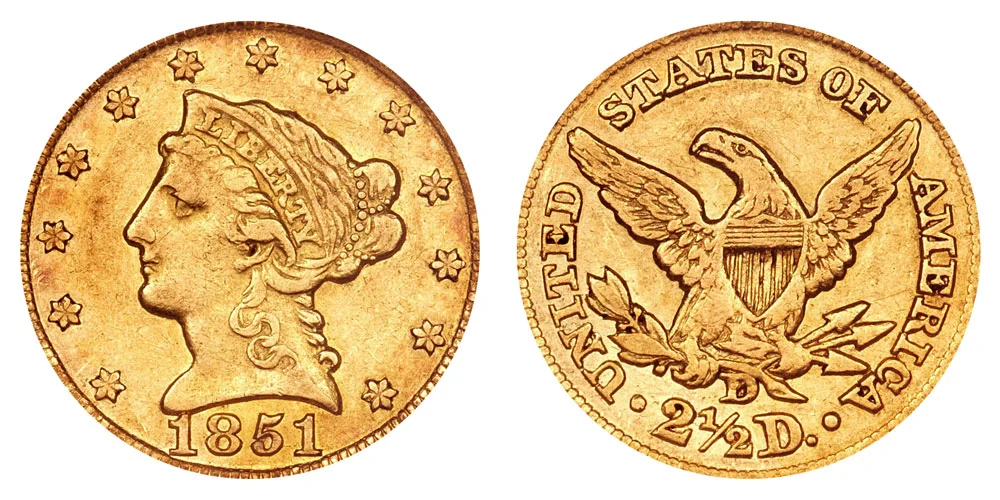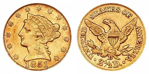 1851 D Liberty Head $2.50 Gold Quarter Eagle - 2 1/2 Dollars