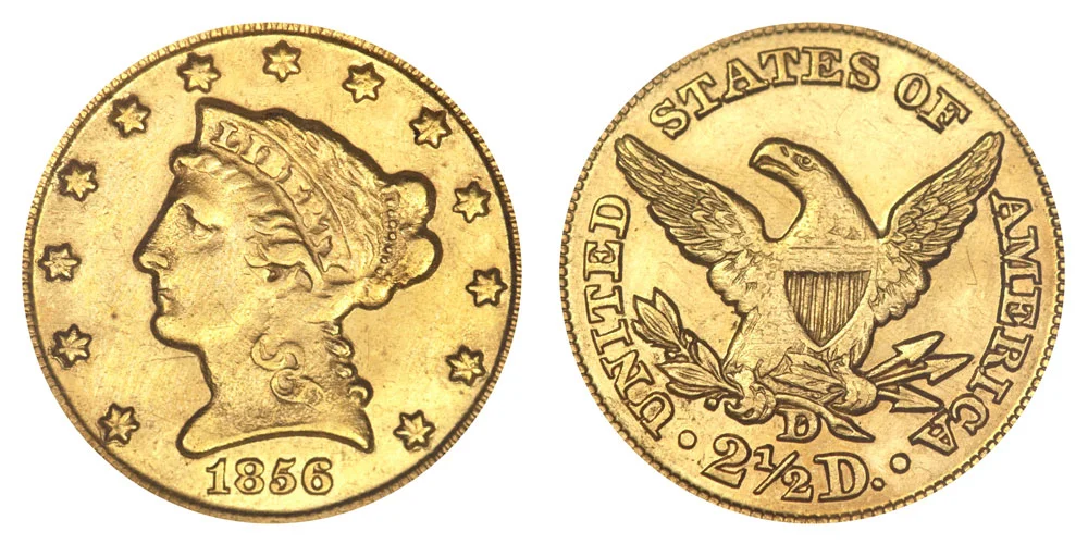 1856 D Liberty Head $2.50 Gold Quarter Eagle - 2 1/2 Dollars