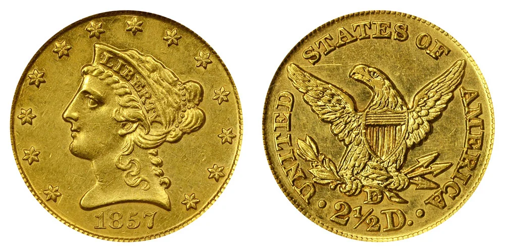 1857 D Coronet Head Gold $2.50 Quarter Eagle